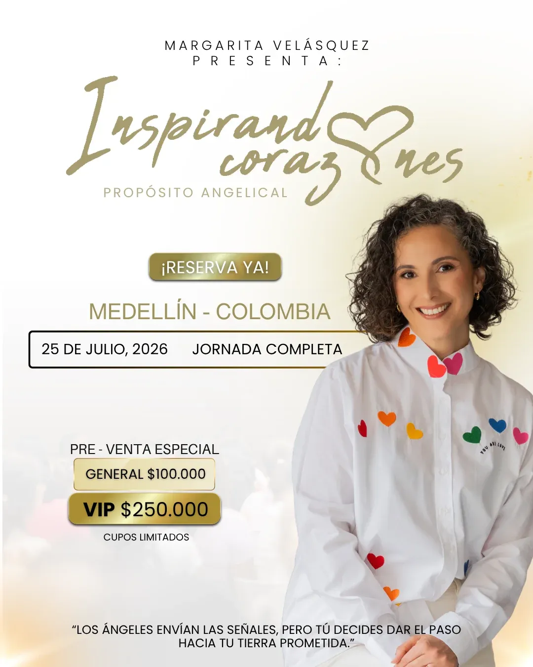 El evento espiritual más esperado del año en Medellín. 300 personas. 10 expertos. Un solo propósito. El 25 de julio los ángeles hablan. ¿Vas a estar?
